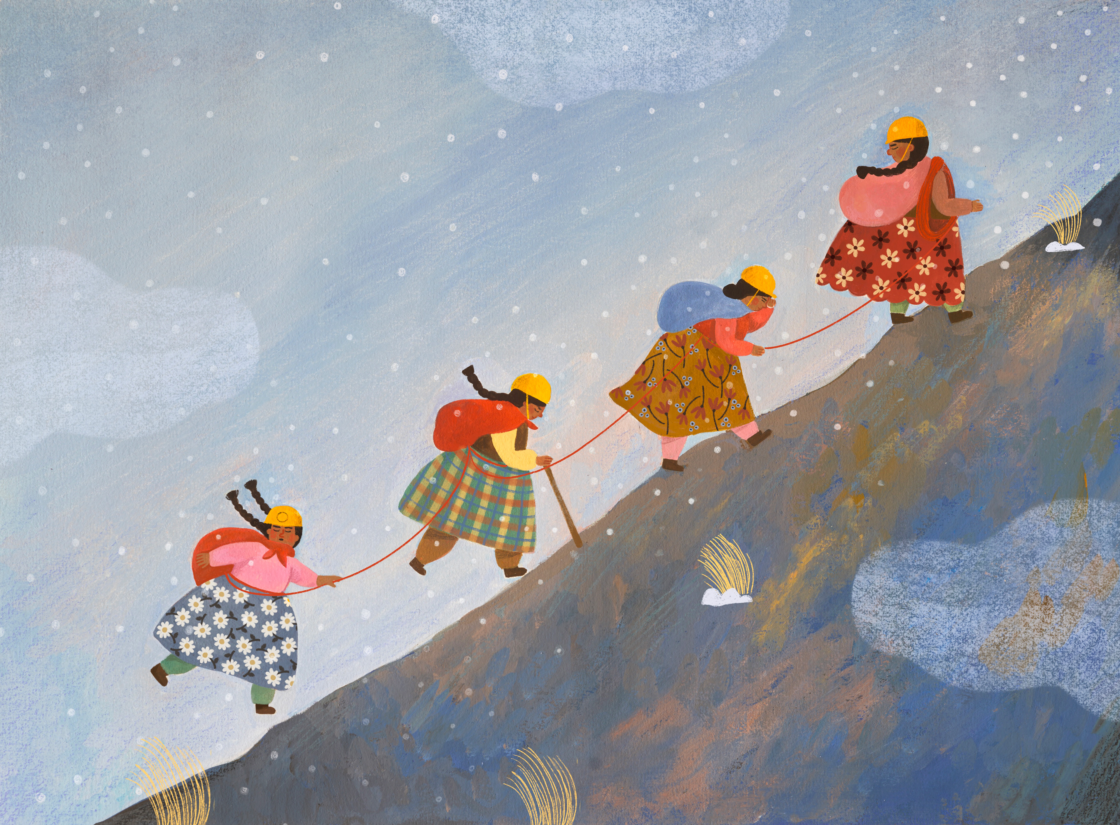 Mi trabajo "Cholitas escaladoras" seleccionado en Catalogo Iberoamericano de Ilustración 2024.